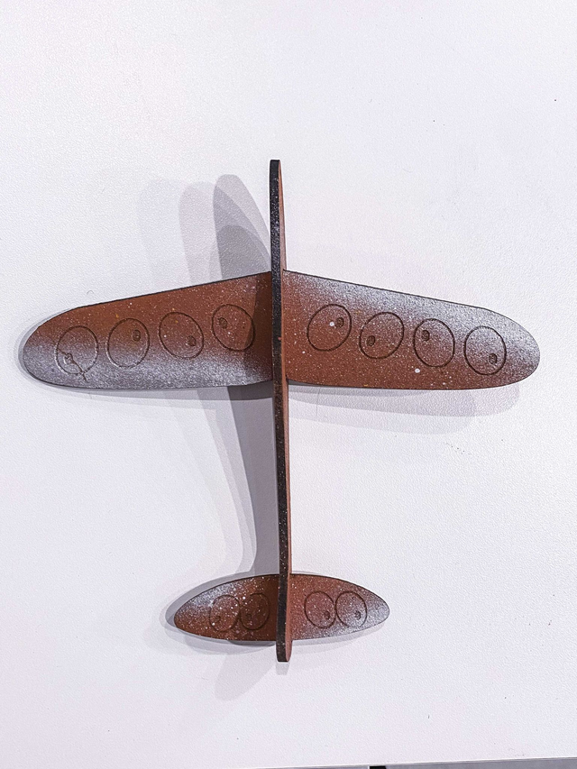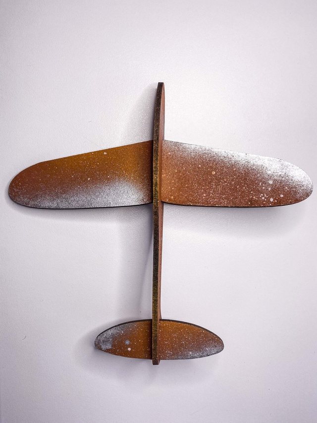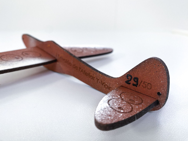 Symbole de notre envolée et de l’exposition qui porte le même nom, une série limitée de 50 avions en bois, peints à la main.